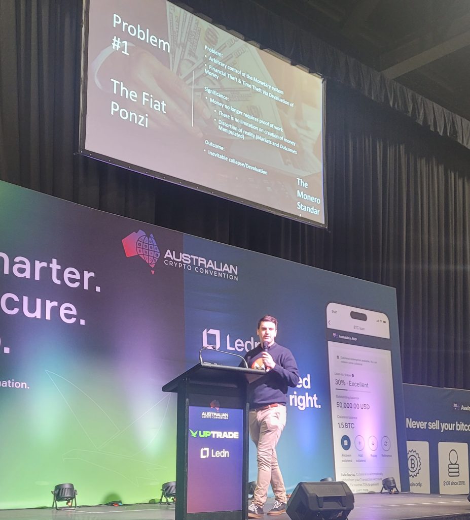 There was a lot of excitement at the 2025 Australian Crypto Convention (@AusCryptoCon). It’s typically hosted in Melbourne, Gold Coast or, for my first visit this year, Sydney. While I am generally interested in peer-to-peer crypto in Bitcoin Cash (which doesn’t seem very popular nowadays), I wanted to make sure I wasn’t living in a bubble and hopefully find interesting projects in the wider community. The two-day weekend conference is all about networking with dedicated tables, lounges and vendor booths to meet staff from exchanges, mining suppliers and wallet providers etc. I was a little relieved to see there were other individuals in Australia who also thought crypto was important enough to attend such an event (not just B2B). This year there were lectures running in five theatres, often simultaneously. Before the event, I advertised the conference in our BCH Australian Telegram group, so I was keen to meet some bcashers in-person.